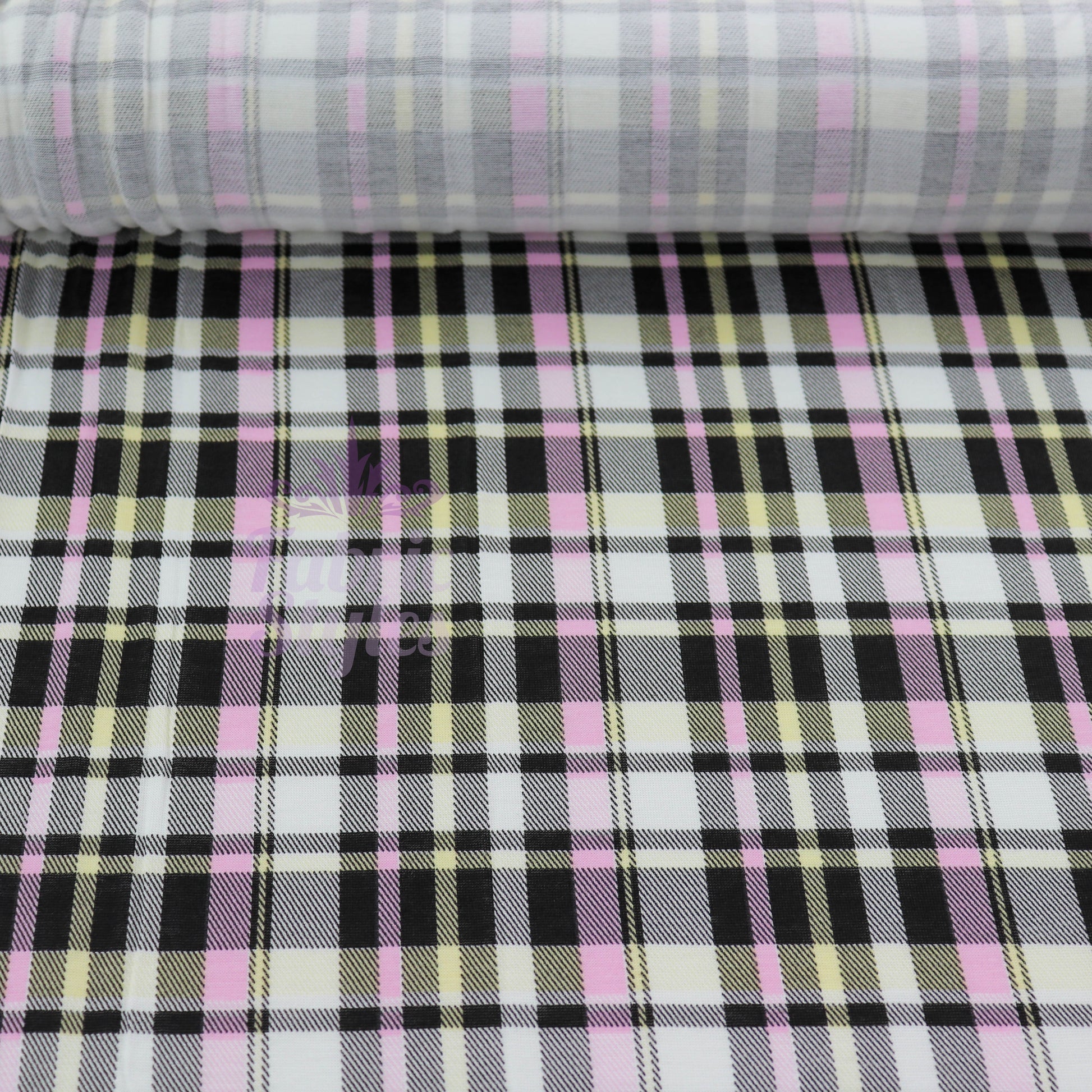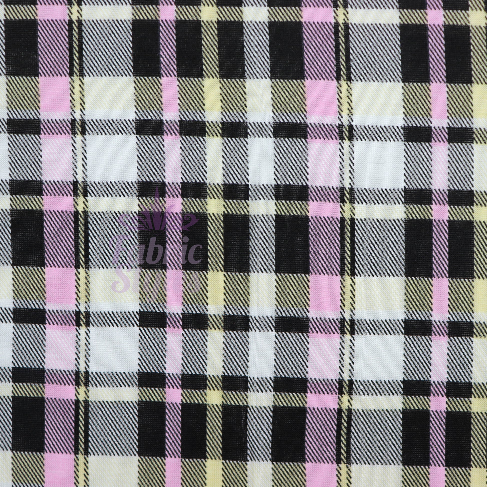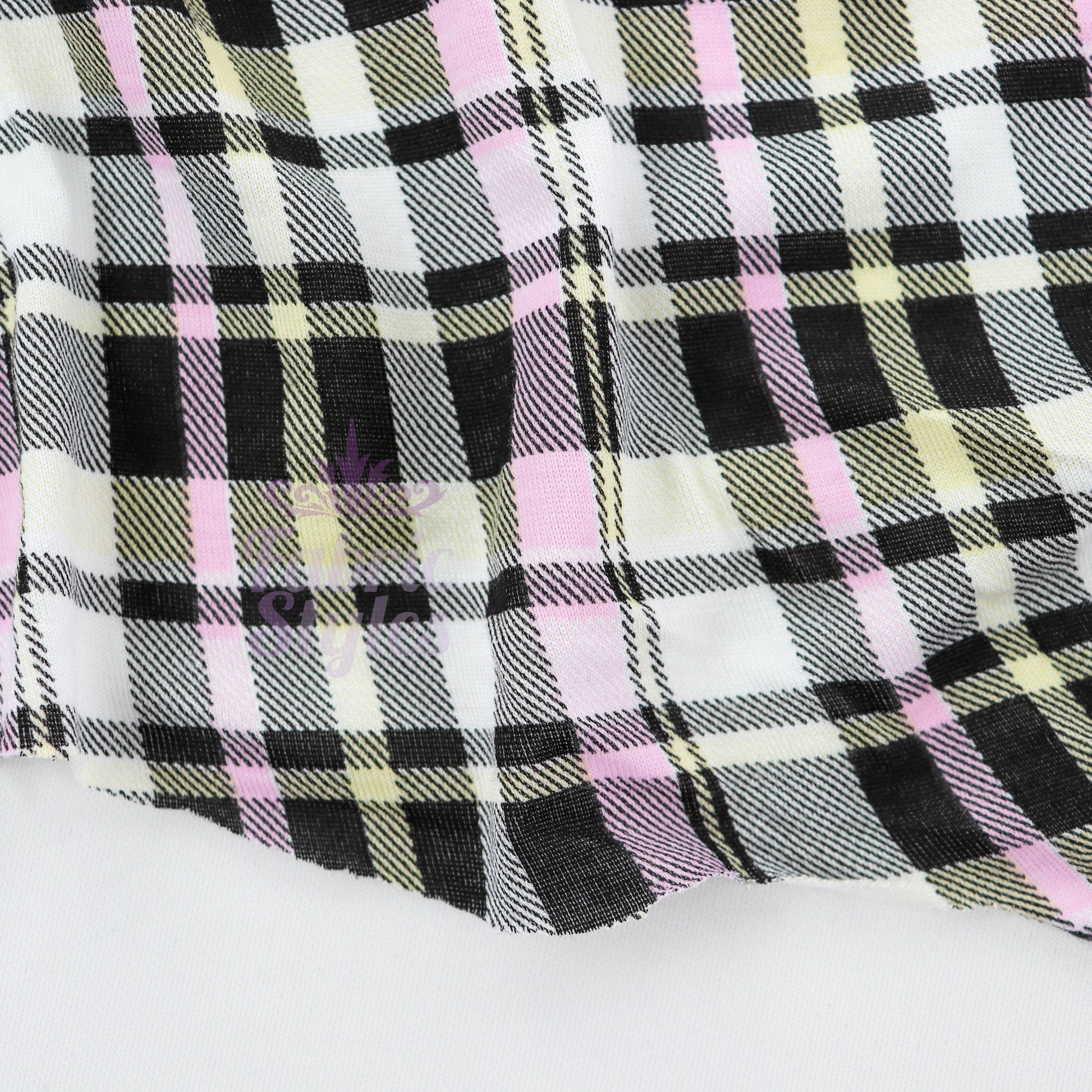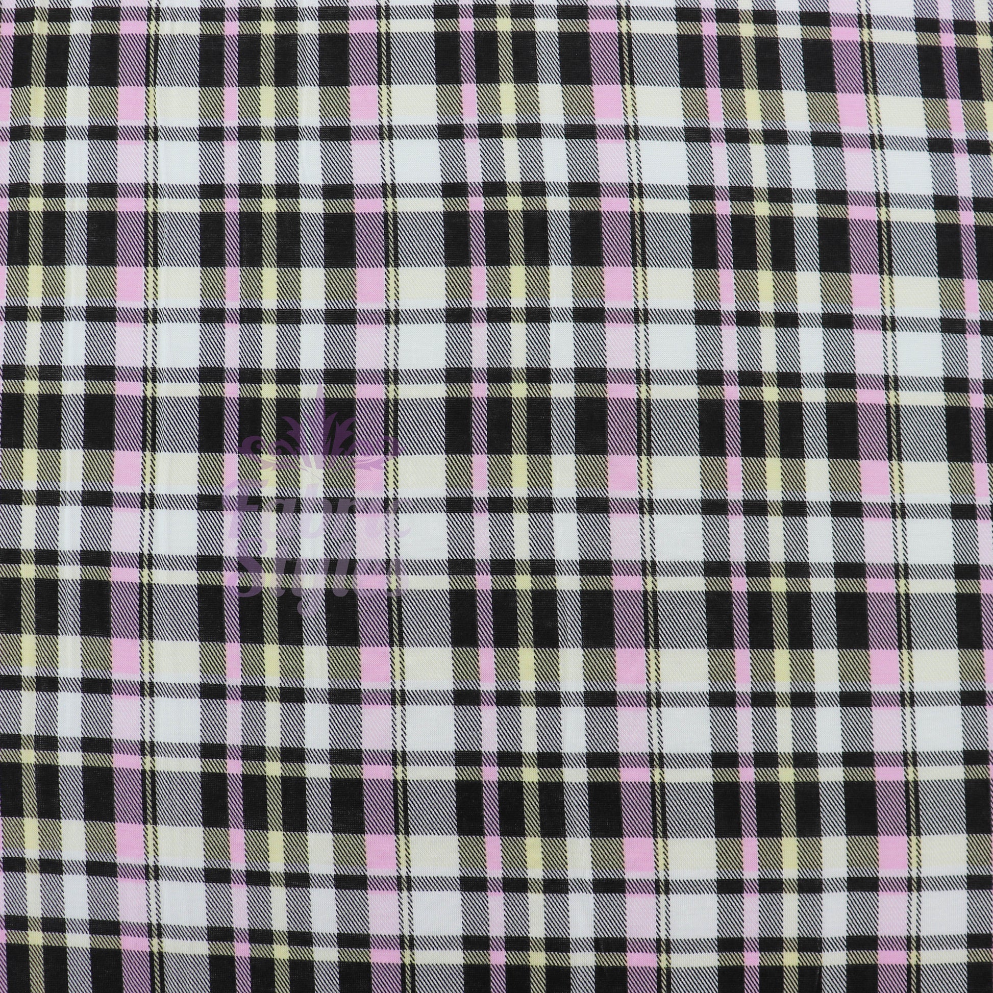 Tartan Yellow Pink Black Viscose Elastane Fabric